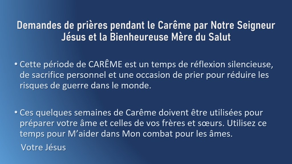 Les prochaines Croisade de Prières Jésus à l’Humanité, Nationale et Mondiale
