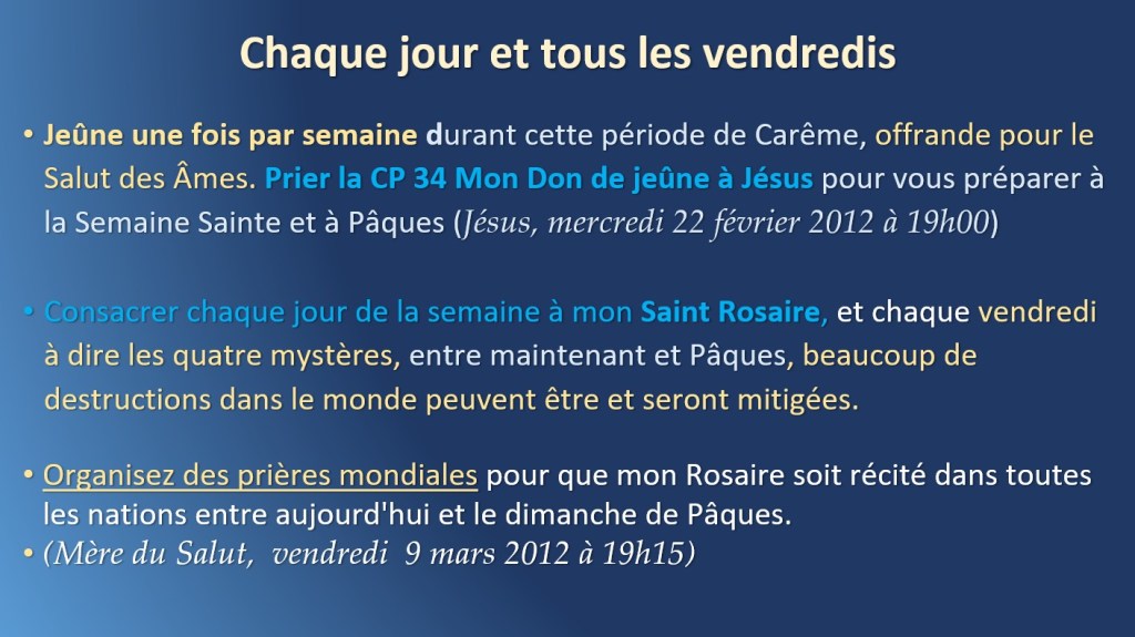 - Le temps du schisme dans l’Église est presque arrivé et vous devez vous préparer maintenant – Mardi 20 mars 2012 à 21h20